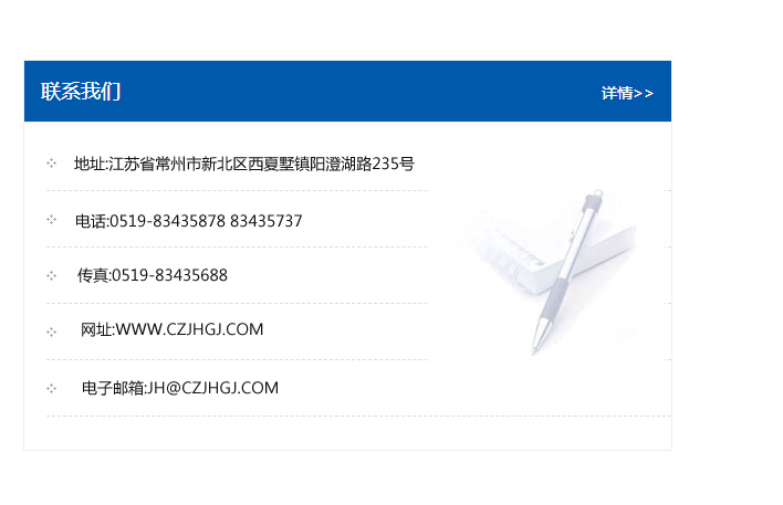 地址:常州市新北區友邦商務大廈1幢16、17層  電話:0519-85101652  傳真:0519-85112595  郵編:213022  網址:www_cz-jiayue_cn.jtbyjc.com  郵箱:xiajifengaa@163.com